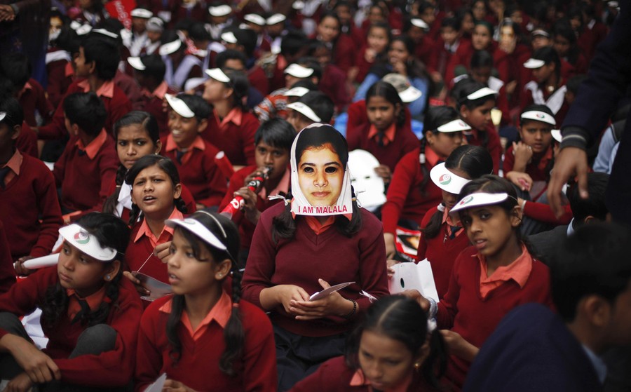 Read moreAn Indian schoolgirl wears a mask of Malala Yousufzai, a 15-year-old girl who was shot at close range in the head by a Taliban gunman in Pakistan, during a campaign to demand better budgetary allocation for health and education of Indian children in New Delhi, India, on February 2, 2013. #