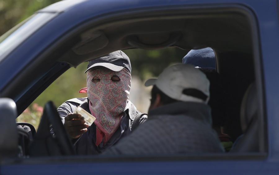 Read moreA masked armed man checks the identity of a driver at a roadblock at the entrance to the town of El Pericon, near Ayutla, Mexico, on January 18, 2013. Hundreds of men in the southern Mexico state of Guerrero have taken up arms to defend their villages against drug gangs, a vigilante movement born of frustration at extortion, killings and kidnappings that local police are unable, or unwilling, to stop. #