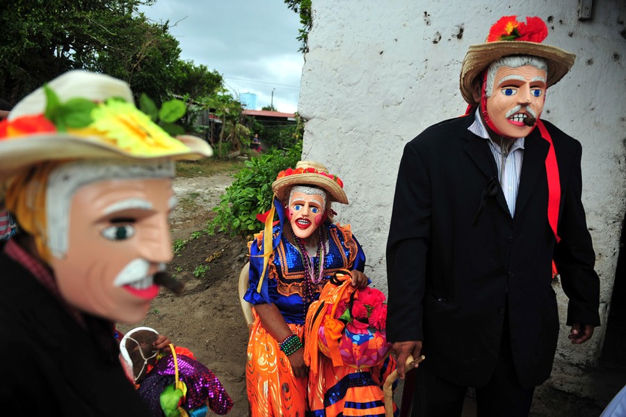 Read moreParishioners wear typical dresses of "El Gueguense", a folkloric satirical drama which combines music, dance and theater, as they take part in the festivities in honor to Saint Sebastian, in Diriamba, about 42 km south of Managua, Nicaragua, on January 19, 2013. #