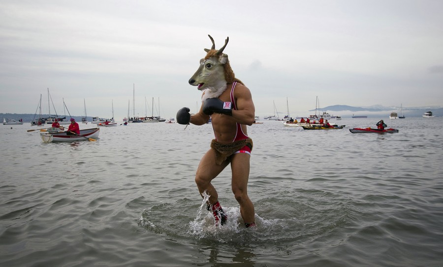 Read moreA half-naked participant wears a gas mask as he takes part in the second "Guangzhu (naked) Run" on a winter morning at the Olympic Forest Park in Beijing, on February 24, 2013. About 100 people joined this event, which required them to run wearing only their underwear for 3.5 km (2.2 miles), as a way to promote environmentally-friendly lifestyles. #