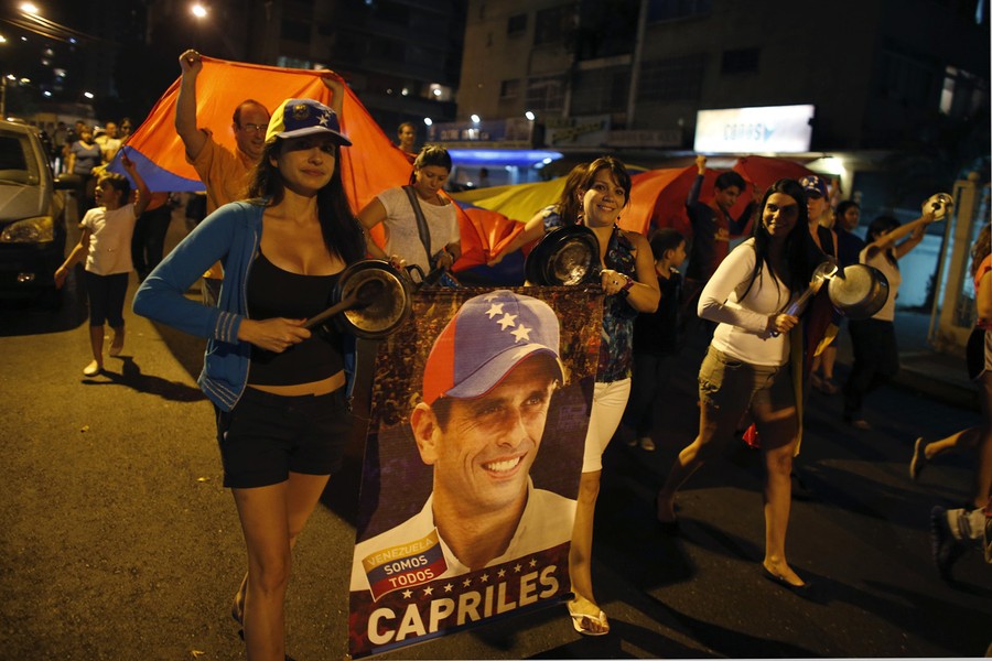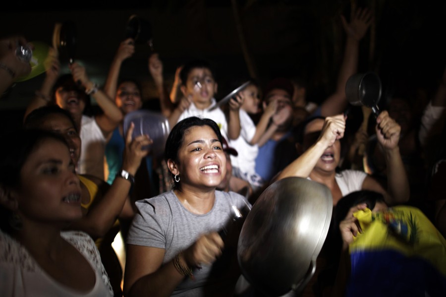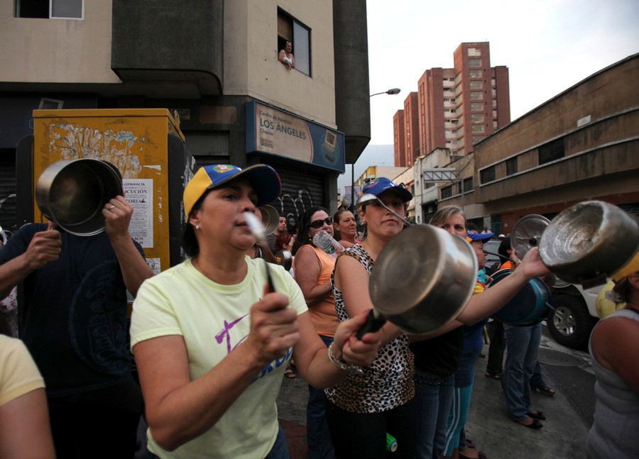 Read moreOpposition supporters bang pots against interim President Nicolas Maduro during a "cacerolazo" protest in Caracas, on April 15, 2013. National Guard troops fired tear gas and plastic bullets to disperse students protesting the official results in Venezuela's disputed presidential election which gave Maduro a very narrow victory. #