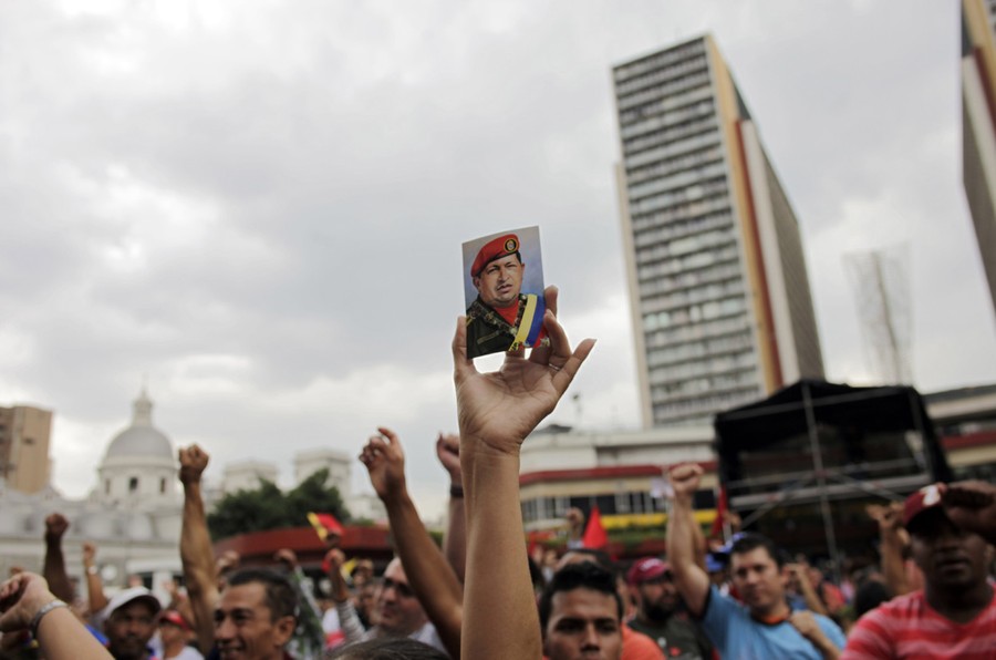 Read moreA "Chavista" demonstrator, and supporter of President-elect Nicolas Maduro, holds a photo of the late President Hugo Chavez during a march in front of the National Electoral Council (CNE) in Caracas, on April 17, 2013. #