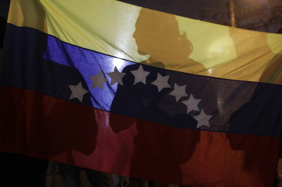 Read moreShadows are cast on a Venezuelan national flag during a protest supporting opposition leader Henrique Capriles in Panama City, on April 15, 2013. Panama has one of the biggest Venezuelan communities in Central America. #
