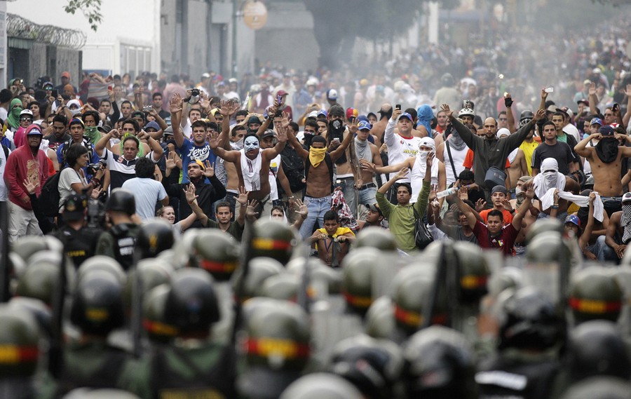 Read moreSupporters of opposition leader Henrique Capriles face off against riot police as they demonstrated for a recount of the votes in Sunday's election, in Caracas, Venezuela, on April 15, 2013. Hundreds of protesters clashed with police in the Venezuelan capital after Capriles called for demonstrations to demand a recount of votes from Sunday's election to replace the late Hugo Chavez. #