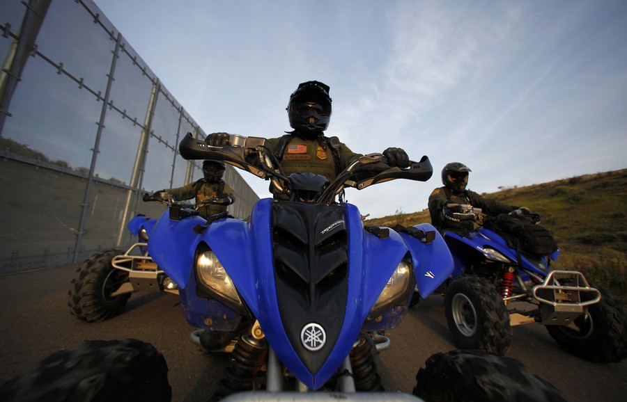 Read moreU.S. Border Patrol agent Manny Villalobos (center) patrols with other agents along the international border between Mexico and the United States near San Diego, California, on March 26, 2013. #