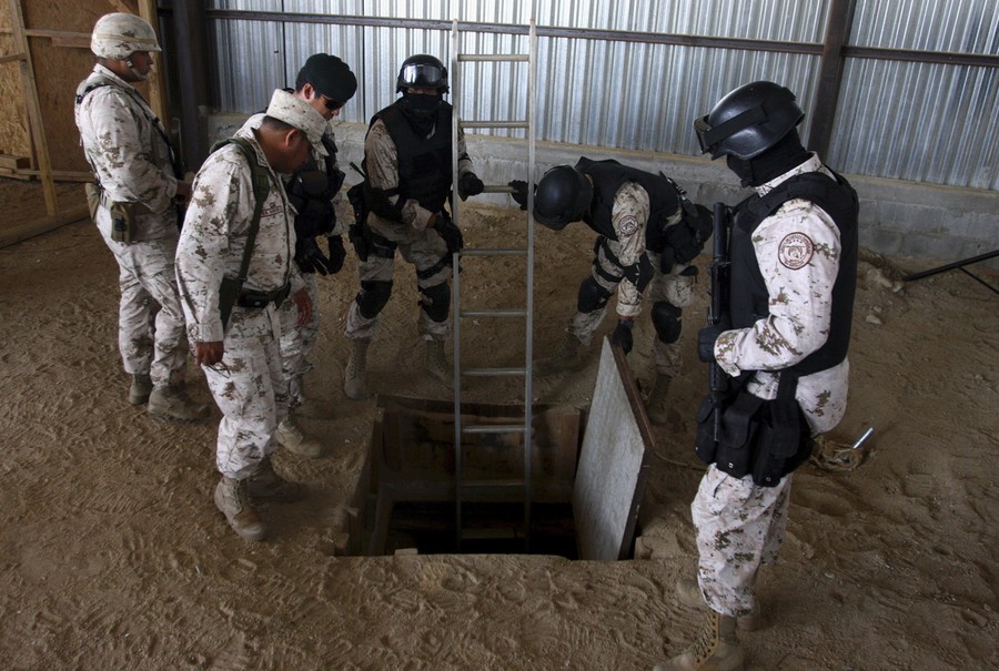 Read moreSoldiers prepare to enter a tunnel during a presentation to the media in Tijuana, on November 16, 2011. Police discovered a "major cross-border drug tunnel" running to California from Mexico, and seized 14 tons of marijuana, authorities said. The tunnel linked warehouses in an industrial park south of San Diego and the Mexican border city of Tijuana. #
