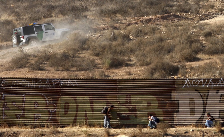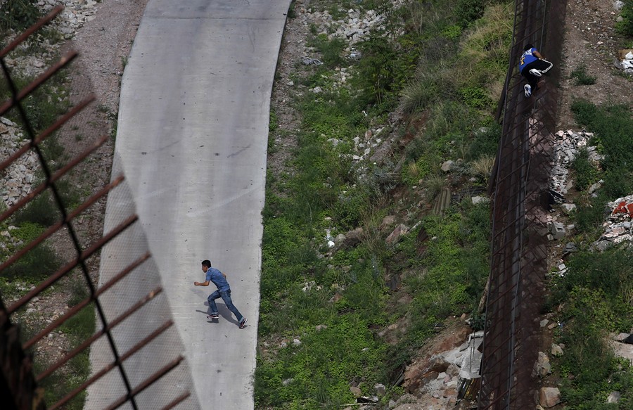 The border between the United States and Mexico stretches 3,169 kilometers (1,969 miles), crossing deserts, rivers, towns, and cities from the Pacific to the Gulf of Mexico. Every year, an estimated 350 million people legally cross the border, with another 500,000 entering into the United States illegally. No single barrier stretches across the entire border, instead, it is lined with a patchwork of steel and concrete fences, infrared cameras, sensors, drones, and nearly 20,000 U.S. Border Patrol agents. As immigrants from Mexico and other Central and South American countries continue to try to find their way into the U.S., Congress is now considering an immigration reform bill called the Border Security, Economic Opportunity and Immigration Modernization Act of 2013. The bill proposes solutions to current border enforcement problems and paths to citizenship for the estimated 11 million existing illegal immigrants in the U.S. Gathered here are images of the US-Mexico border from the past few years.