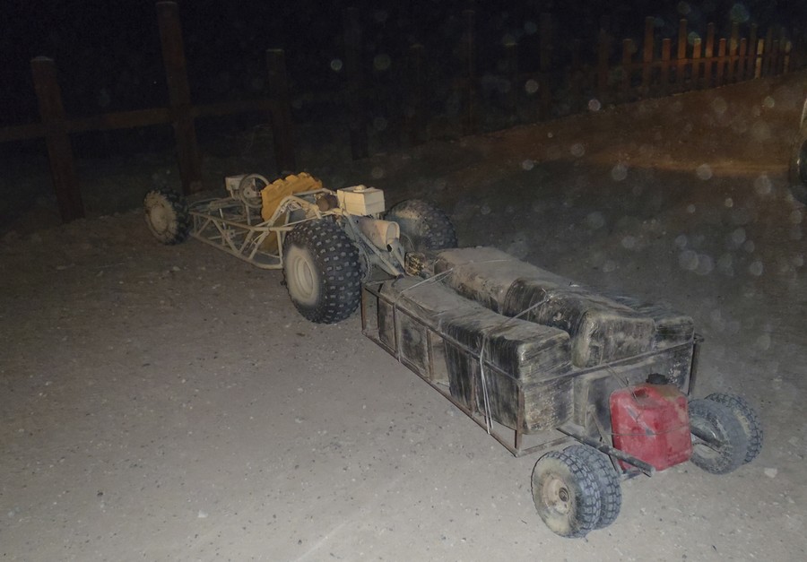 Read moreU.S. border cops in western Arizona seized this off-road go-kart and trailer packed with marijuana, in an attempt by Mexican smugglers to beat beefed up border security. The Border Patrol's Yuma sector said agents and officers from the Cocopah Tribal Police Department spotted the single-seater go-kart hauling a trailer through the desert near Yuma, Arizona, and gave chase. The driver abandoned the homemade vehicle, which was spray painted a desert beige, fitted with knobbly off-road tires, and towing a trailer packed with 217 pounds of marijuana, about 100 yards from the border, and fled back to Mexico. #