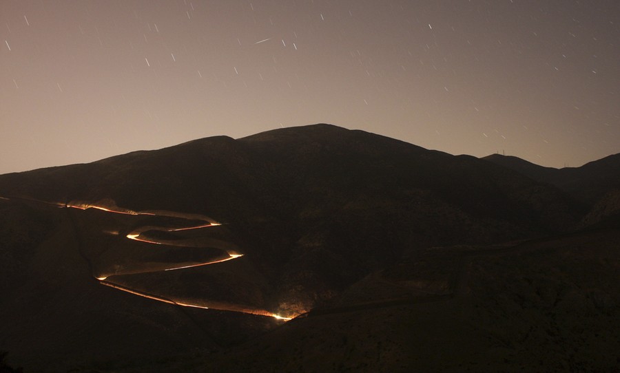 Read moreA U.S. border patrol vehicle, seen from the Mexican side of the border in a long-exposure photograph, while driving near Otay Mountain on the outskirts of San Diego, California, on July 1, 2010. #
