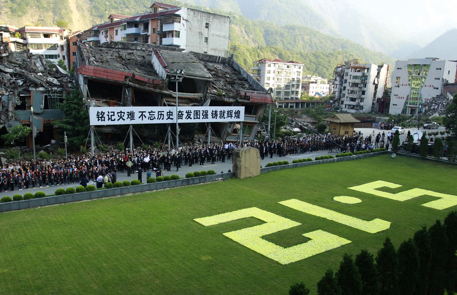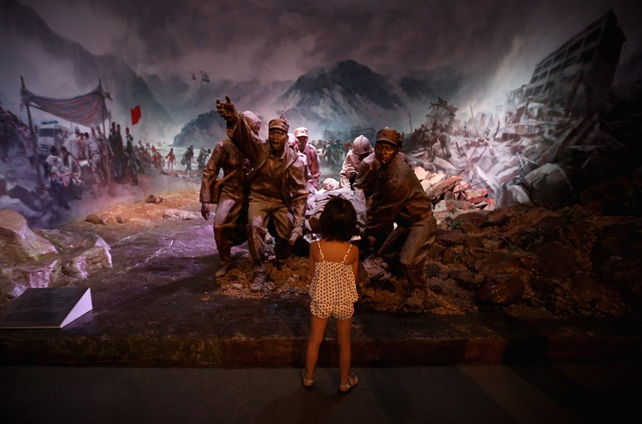 Yesterday was the fifth anniversary of the 2008 Sichuan Earthquake, a magnitude 8.0 quake which struck a mountainous region in southwestern China, destroying several villages, killing more than 70,000, and leaving another 18,000 still listed as missing. In the hard-hit town of Beichuan, dozens of massive buildings toppled or collapsed. Chinese authorities decided to stabilize the remaining buildings after the earthquake, preserving the entire town as a memorial to the tremendous loss. Collected here are photographs of Beichuan as it stands today, mourners paying their respects, a newly-opened museum, and some of the rebuilding taking place in the region. See also: The Legacy of Sichuan's Big Earthquake.