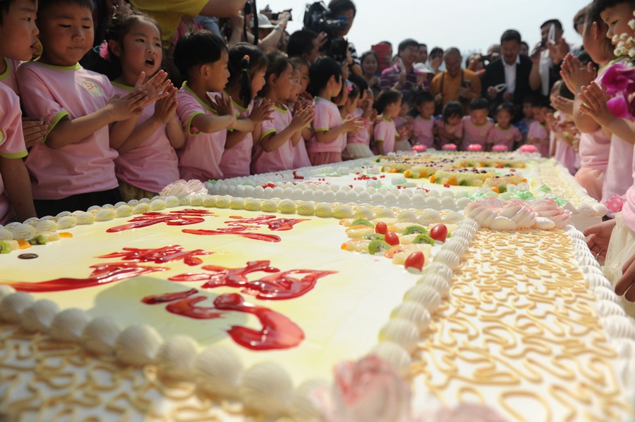 Read moreChildren gather around cakes on a table as they celebrate their birthdays at a temple in Shifang, Sichuan province, on May 12, 2013. According to local reports, the children were born shortly after May 12, 2008, the time the Wenchuan Earthquake struck. A Buddhist abbot took in 108 pregnant women in his temple, and helped them deliver their children. On the fifth anniversary of the earthquake, the children came back to celebrate their birthday as well as expressing their gratitude to the temple. #