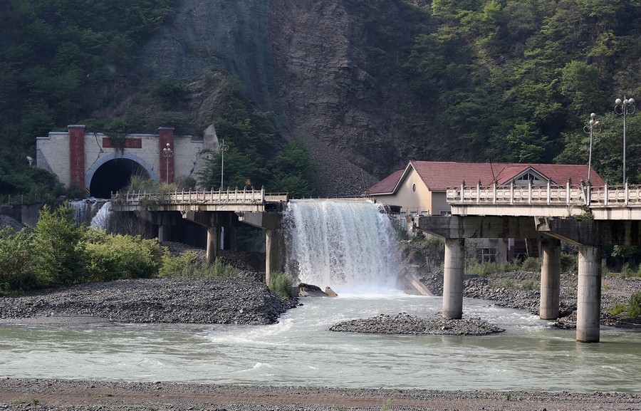 Read moreHuge landslides triggered by the 2008 earthquake filled valleys and dammed rivers, creating "quake lakes", and altering river flows. Part of the Jian River still flows through a mountain road tunnel in Beichuan, spilling out over a broken bridge, photographed on May 10, 2013. #