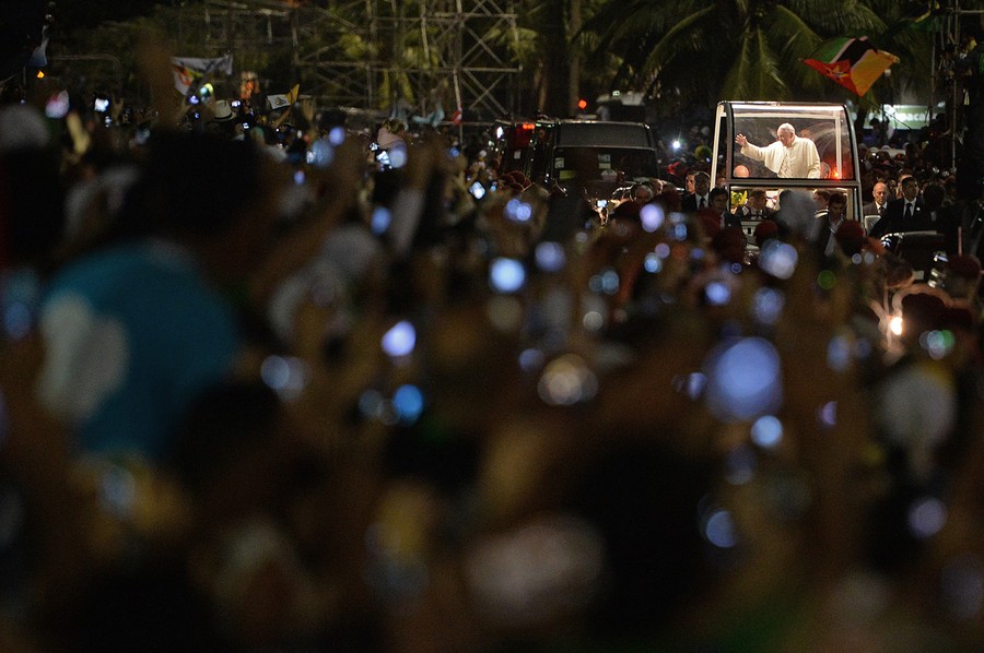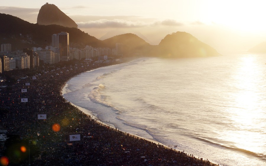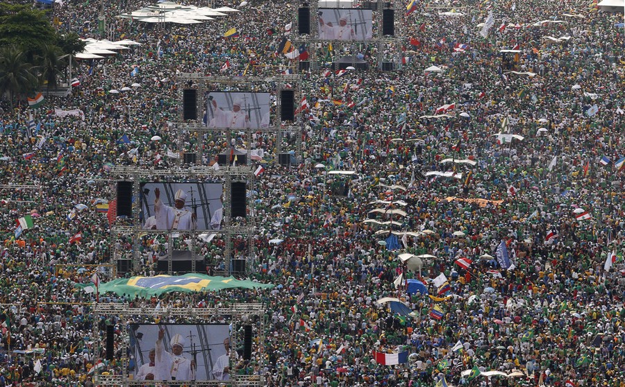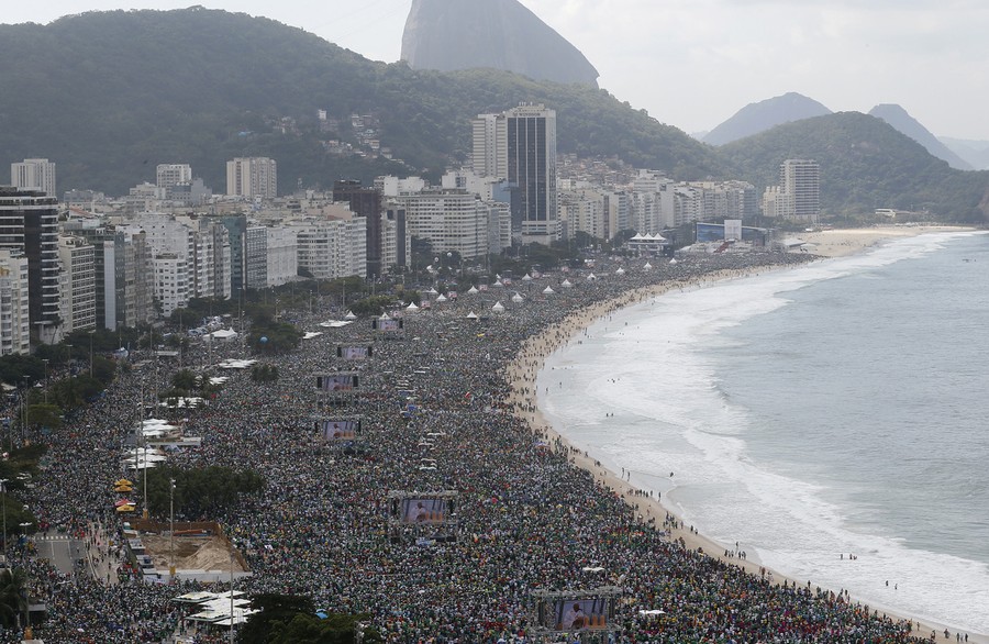 Read morePope Francis waves at crowds standing along the beachfront in Rio de Janeiro on his way for a prayer vigil with hundreds of thousands of young Catholic pilgrims attending World Youth Day (WYD) at Copacabana beach, on July 27, 2013. #