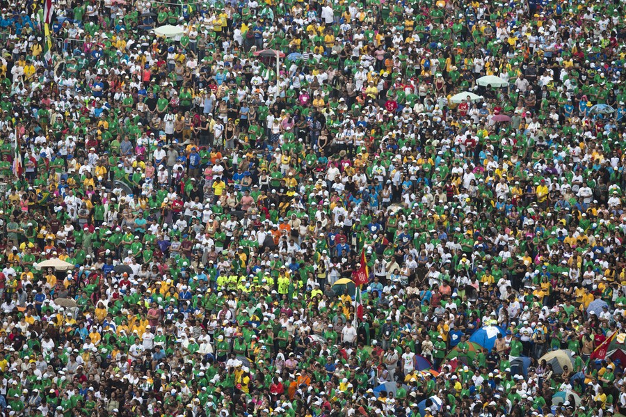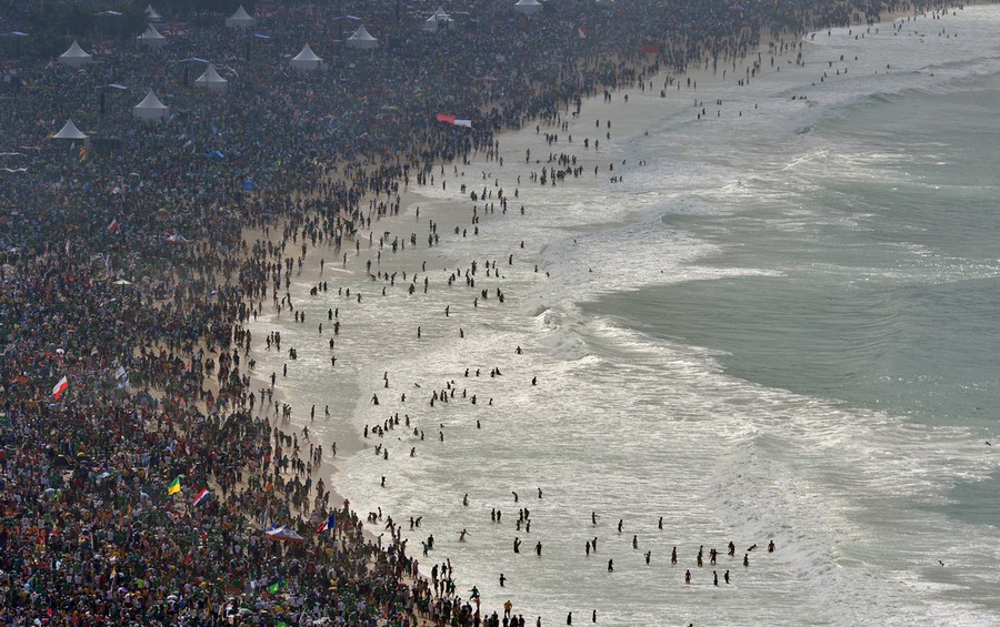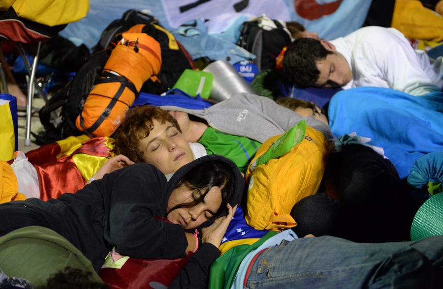 Read moreCatholic pilgrims attending World Youth Day (WYD) sleep close together during a prayer vigil headed by Pope Francis, at Copacabana beach in Rio de Janeiro, on July 27, 2013. #