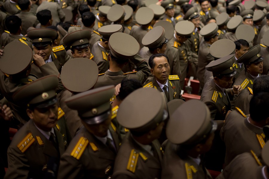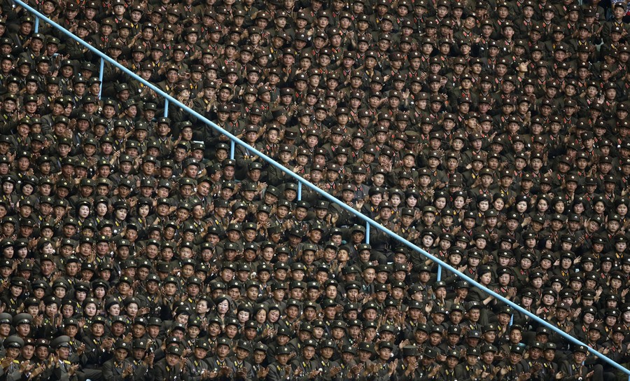 Read moreNorth Korean soldiers listen to President of the Presidium of the Supreme People's Assembly of North Korea Kim Yong-nam (unseen) ahead of a mass gymnastic and artistic performance Arirang, in Pyongyang, on July 26, 2013. #