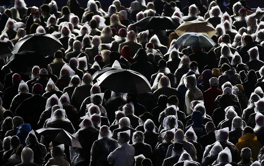 In certain places in the world, this weekend was a very crowded one. In Egypt, hundreds of thousands took to the streets of Cairo to show their support for the armed forces, and continued disapproval of ousted president Mohammed Morsi. Thousands of miles away, North Koreans commemorated the 60th anniversary of the signing of a truce in the 1950-1953 Korean War, staging its largest ever military parade, and presenting an enormous "Arirang" mass games performance. And, on the other side of the world, Pope Francis celebrated mass in Rio de Janeiro before a crowd of over 3 million on the sands of Copacabana Beach. Gathered here are a dozen images from each of these events, a snapshot of people massing together this weekend for very different reasons.