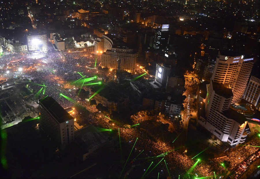Read moreAn aerial picture taken from a military helicopter shows Tahrir Square during an anti-Morsi rally in Cairo, early on July 27, 2013. Mass rallies by supporters and opponents of Mohamed Morsi swept Egypt Friday, as the authorities formally detained the ousted Islamist president accusing him of conspiring with the Palestinian group Hamas. #