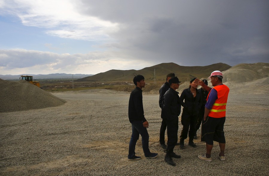 Read moreMembers of Tsagaan Khass talk to a quarry worker, on June 23, 2013. The group has rebranded itself as an environmentalist organization fighting pollution by foreign-owned mines, seeking legitimacy as it sends Swastika-wearing members to check mining permits. #