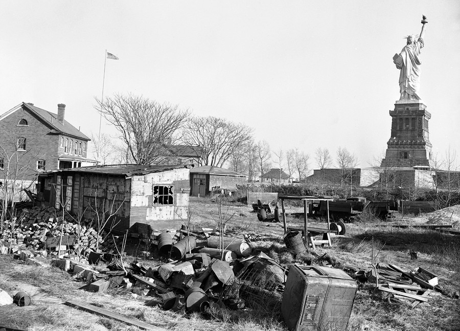 Read moreThe statue of liberty, gift of French school children, which 17 Congressmen from New York and New Jersey agree "stands in a slum", towers above rubbish and junk on Bedloe's Island in New York Harbor on March 5, 1948. The Congressmen asked a House Appropriations committee for $1,000,000 for slum clearance on the Island. #