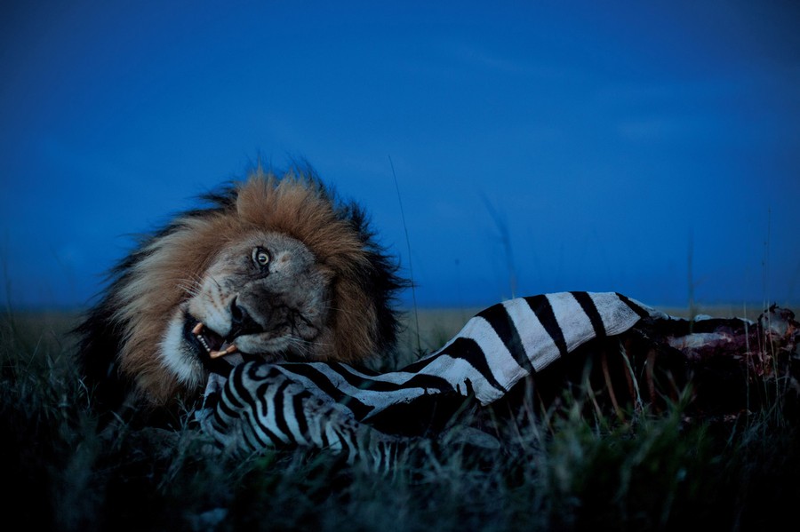 Read morePhotographer Nick Nichols made several extended trips to the Serengeti between July 2011 and January 2013, determined to break new visual ground in the coverage of the Serengeti Lion. Here, C-Boy, a dark-maned male lion defending his interests, confronts the peril of lion-on-lion violence on a daily (and nightly) basis. Four years ago, C-Boy barely survived a fight for dominance with three other males. #