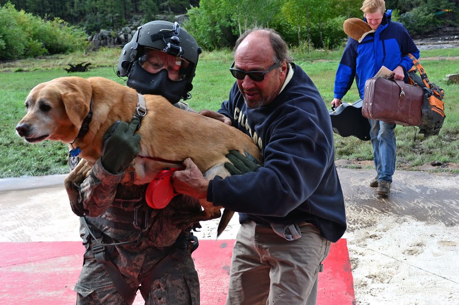 Read moreU.S. Army Sgt. 1st Class Keith Bart, a UH-60 Black Hawk helicopter crew chief with Charlie Company, 2nd General Support Aviation Battalion, carries an animal to safety during flood rescue and recovery operations in Boulder, Colorado, on September 16, 2013. #
