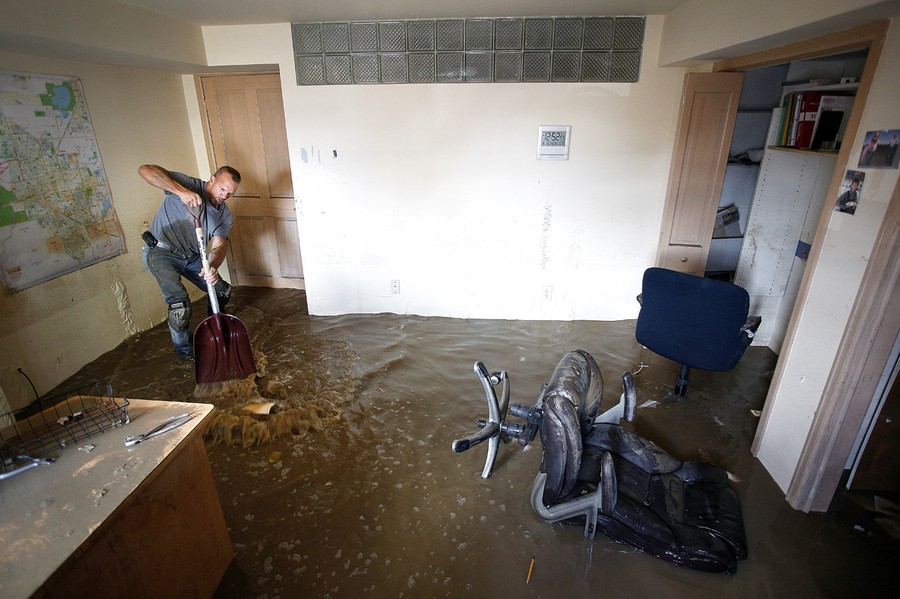 Read moreRobert Pandolfi of Longmont, Colorado uses a shovel to direct water in the basement of his boss' home as residents clean up in the wake of a week of heavy flooding on September 16, 2013 in Longmont, Colorado. #