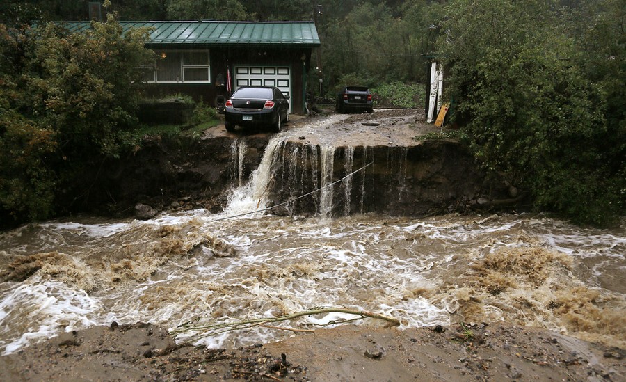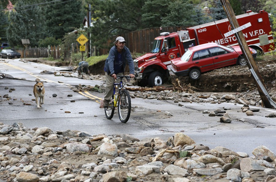 Over the past few days, a 4,500-square-mile area across Colorado's Front Range has been hit by devastating floods, leaving at least six dead, forcing thousands to evacuate, and destroying thousands of homes and farms. Record amounts of rainfall generated flash floods that tore up roads and lines of communication, leaving many stranded, and hundreds still listed as missing. Evacuations are still underway as weather conditions have improved slightly. Forecasters predict drier weather by mid-week. Gathered here are recent images of the devastation in Colorado.