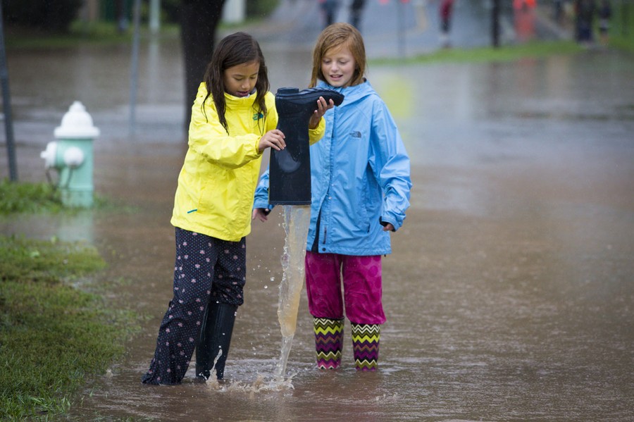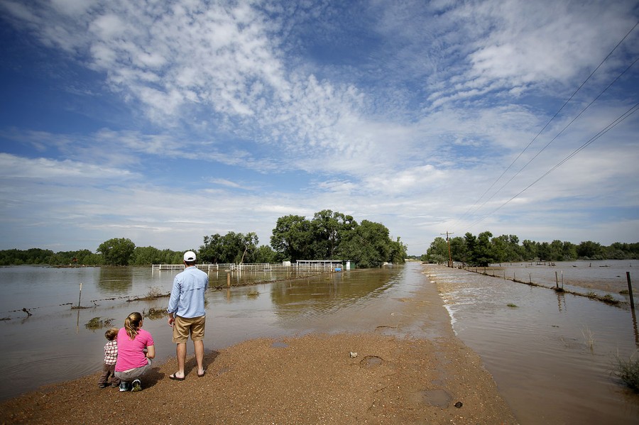 Read moreAllison Wold of Denver, Colorado and her nephew, Jack Wold, look at a flooded ranch home with John Brinckerhoff, also of Denver, after heavy flooding near Dearfield, Colorado, on September 14, 2013. They were trying to cross County Road 87 to get to some family property but couldn't because of the flooding. #