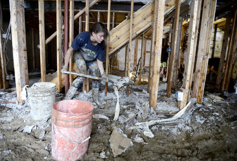 Read moreDakota Walters shovels mud and debris at her aunt and uncle's home on Qualla Drive after their basement was flooded with 8-feet of water in Boulder, Colorado, on September 14, 2013. #