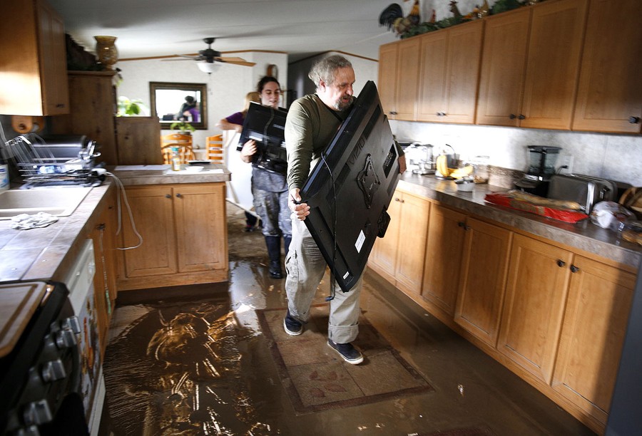 Read moreDon DeGraff and his niece Julie DeGraff, both of La Salle, Colorado, carry valuable items out of their home, on September 14, 2013. Don said he already plans to rebuild adding, "we built it from nothing and we'll do it again." #