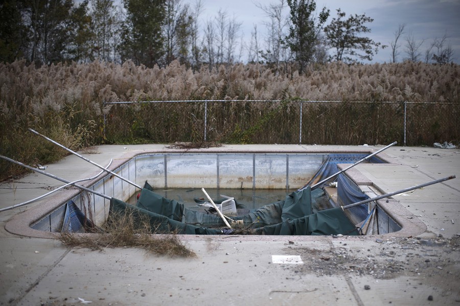 Read moreThe remains of a swimming pool, next to where a home destroyed by Superstorm Sandy once stood in the Oakwood Beach section of Staten Island, on October 23, 2013. As the one year anniversary of the storm approaches and as demolition begins, homes in Oakwood beach now lay mostly vacant and abandoned as the modest ocean-side neighborhood which now resembles a ghost town is set to all but disappear. #