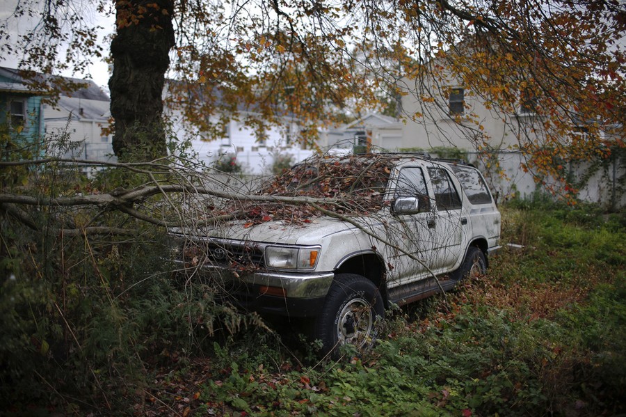 Read moreA vehicle abandoned and destroyed by Superstorm Sandy sits in a yard overgrown with weeds and brush in the Oakwood Beach section of Staten Island, on October 23, 2013. #
