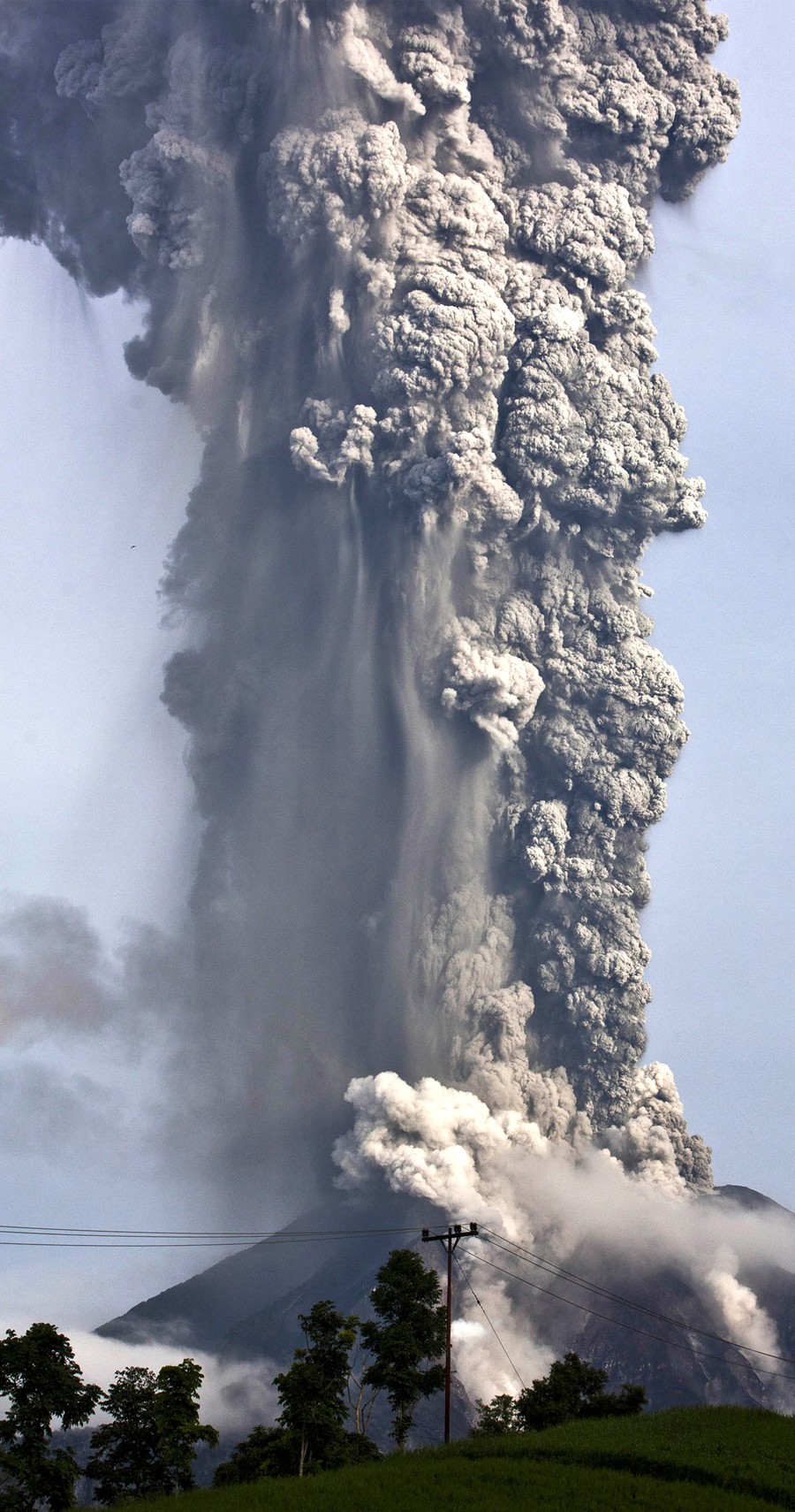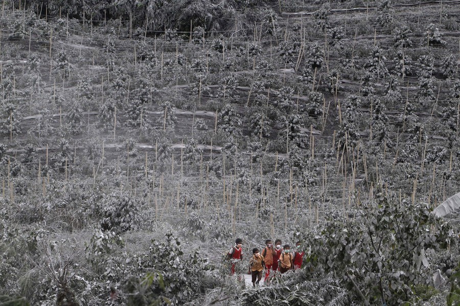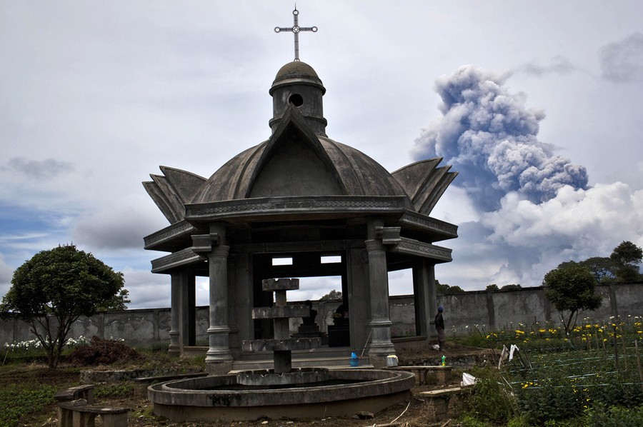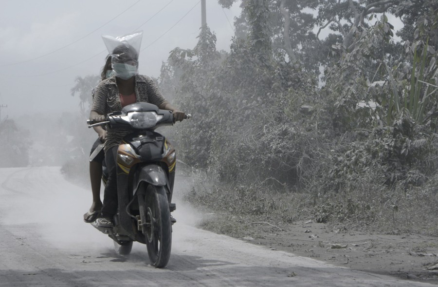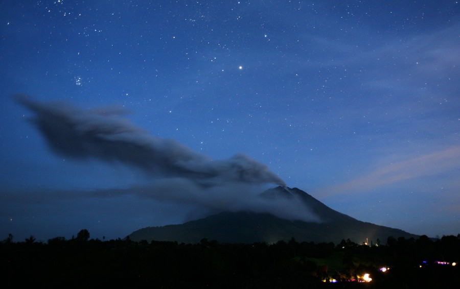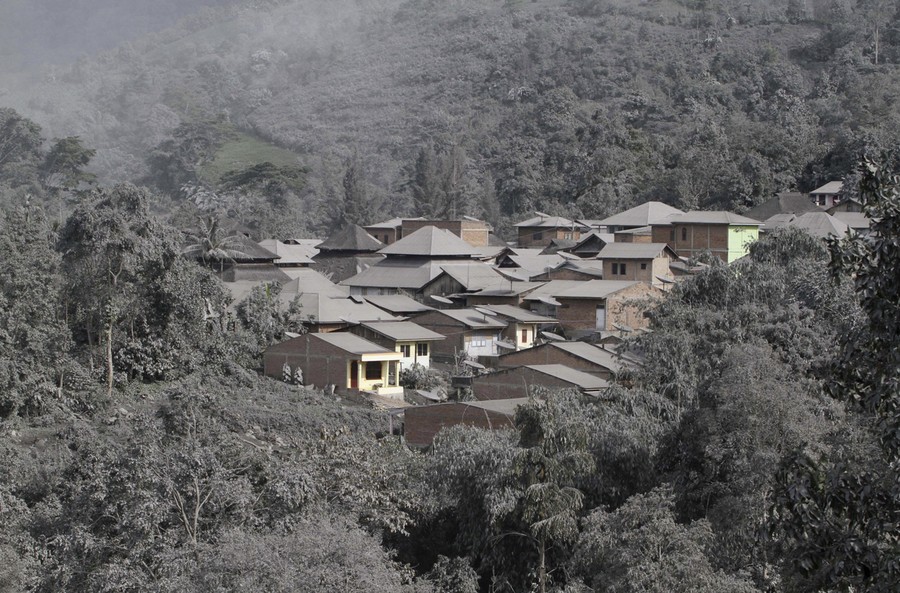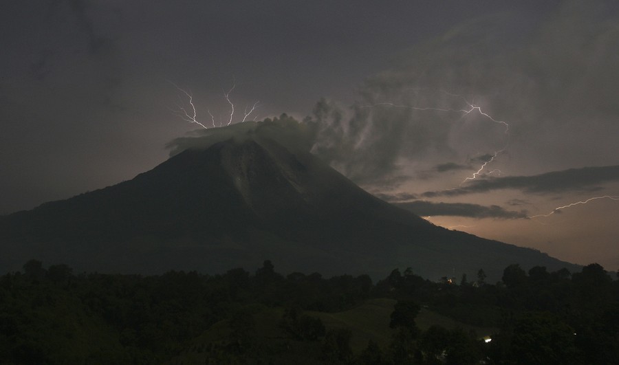 In Indonesia's North Sumatra province, Mount Sinabung, a 2,600-meter (8,530-foot) tall volcano, has erupted several times over the past few days, spewing massive clouds of superheated gas and ash into the sky, and down its slopes in deadly pyroclastic flows. Sinabung has been active off and on since September, following a re-awakening in 2010, after more than 400 years of dormancy. Thousands of villagers and farmers living nearby have been evacuated, hoping to be able to return home soon.