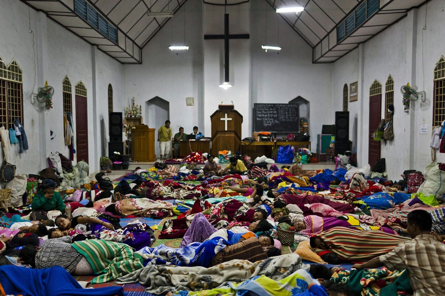 Read moreRefugees sleep inside a church set up as a temporary evacuation center on November 15, 2013 in Karo district. Up to 4,300 residents have been evacuated from five villages in North Sumatra due to the volcanic eruptions of Mount Sinabung. #