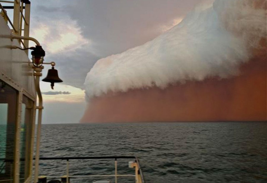 Read moreA white shelf cloud caps brownish dirt from a dust storm, or haboob, as it travels across the Indian Ocean near Onslow on the Western Australia coast in this handout image distributed by fishwrecked.com and taken January 9, 2013. #