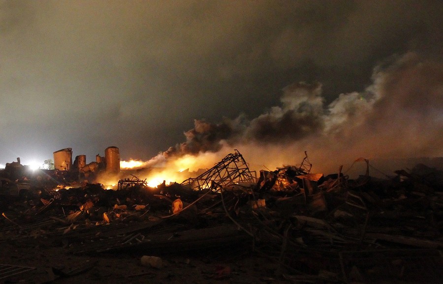 Read moreThe wreckage of a fertilizer plant burns after a massive explosion at the plant in the town of West, near Waco, Texas early April 18, 2013. The deadly explosion ripped through the fertilizer plant late on Wednesday, killing 15, injuring more than 160 people, leveling dozens of homes and damaging other buildings including a school and nursing home. #