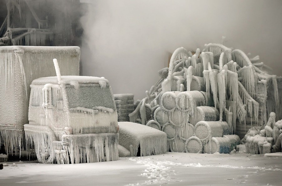 Read moreA truck is covered in ice as firefighters work to extinguish a massive blaze at a vacant warehouse in Chicago, Illinois, on January 23, 2013. More than 200 firefighters battled the five-alarm fire as temperatures were in the single digits. #
