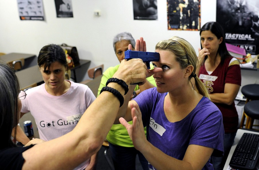 Read moreA group of local public school teachers use rubber training guns as they practice drills to disarm an attacker, during a teachers-only firearms training class offered for free at the Veritas Training Academy in Sarasota, Florida, on January 11, 2013. The December 14, 2012 tragedy in Newtown, Connecticut, where 20 first-graders and six adults were killed at Sandy Hook Elementary School, sparked a national debate about whether to arm teachers, prompting passionate arguments on both sides. #