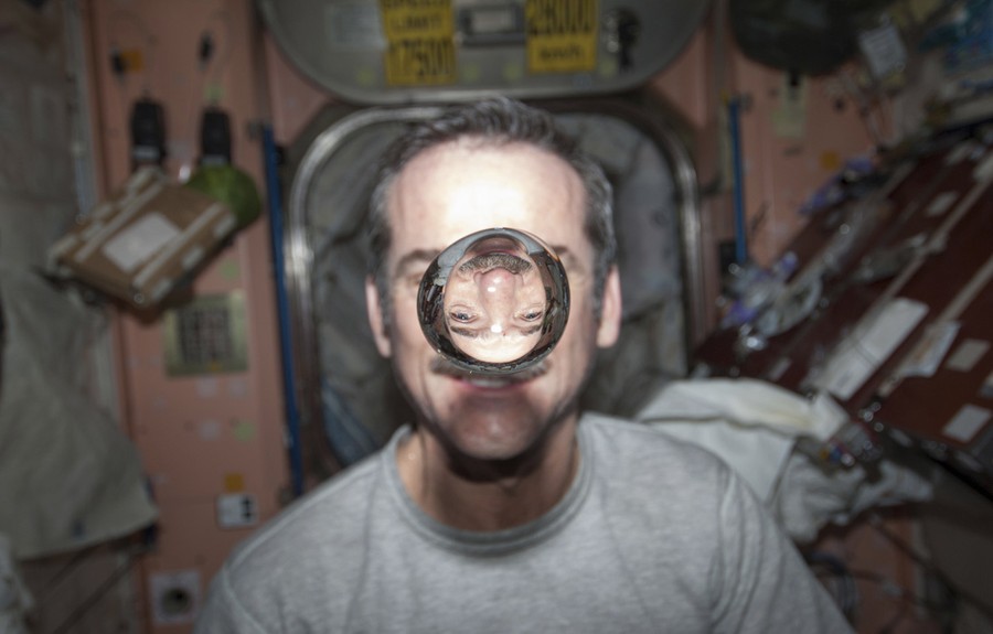 Read moreCanadian Space Agency astronaut Chris Hadfield, Expedition 34 flight engineer, watches a water bubble float freely between him and the camera, showing his image refracted, in the Unity node of the International Space Station, on January 21, 2013. #