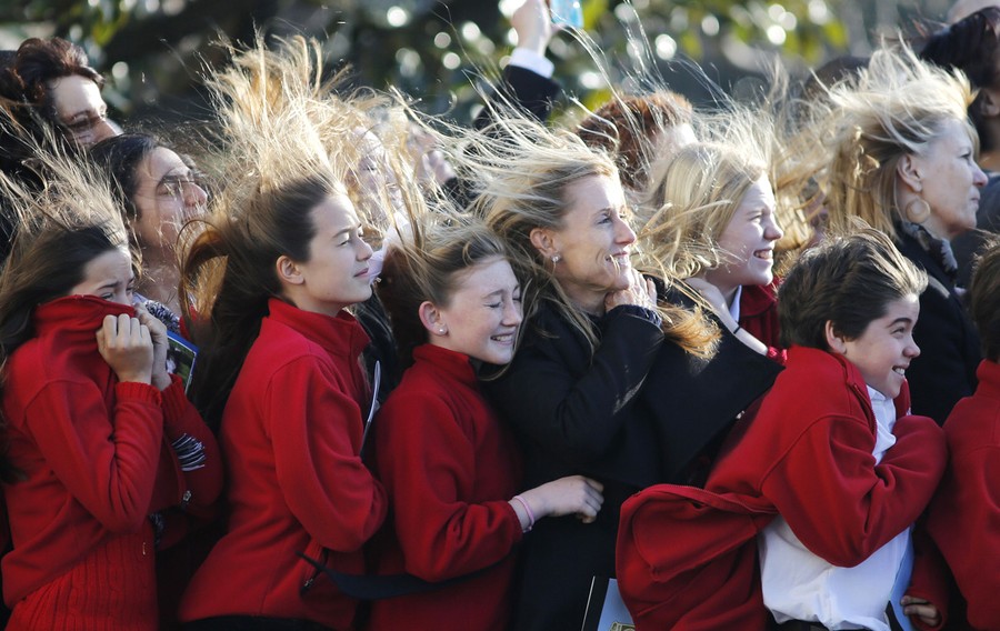 Read moreSixth grade students from the Park Maitland School in Maitland, Florida, watch as Marine One carrying U.S. President Barack Obama takes off from the South Lawn at the White House in Washington as he departs for Las Vegas, on January 29, 2013. #