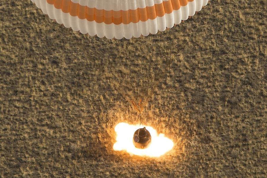 Read moreThe Soyuz TMA-08M spacecraft carrying Expedition 36 Commander Pavel Vinogradov of the Russian Federal Space Agency (Roscosmos), Flight Engineer Alexander Misurkin of Roscosmos and Flight Engineer Chris Cassidy of NASA, lands safely in a remote area of Kazakhstan, on September 11, 2013. #