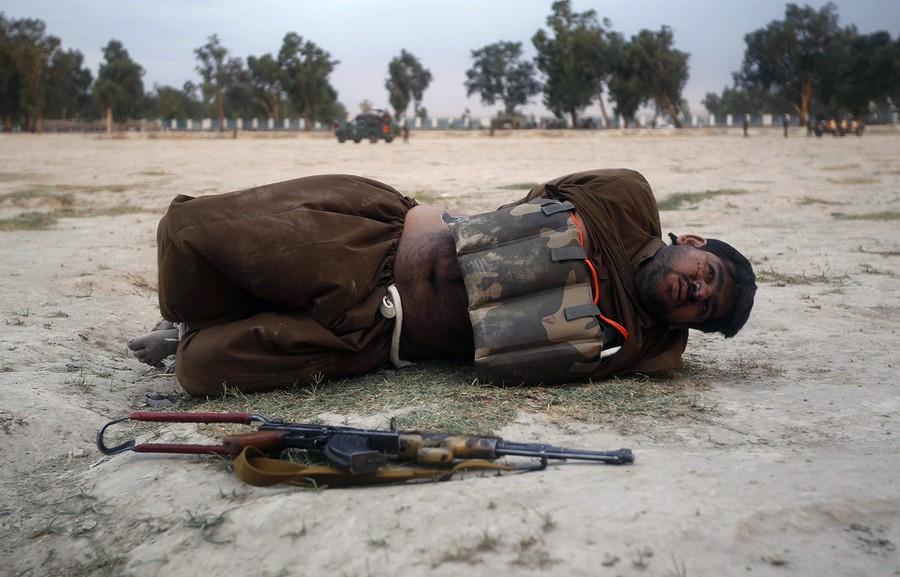 Read moreA suicide attacker lies on the ground after his vest was defused in Jalalabad province, Afghanistan, on June 30, 2013. Afghan security forces captured the would-be suicide attacker before he was able to blow himself up. #