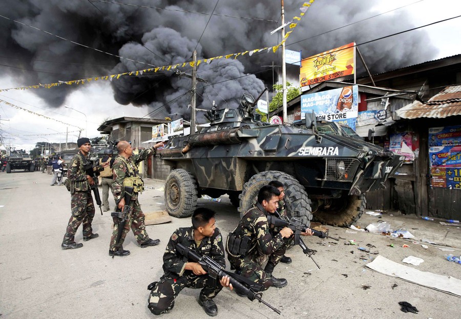 Read morePhilippine government troops continue their assault on members of the Muslim rebel Moro National Liberation Front in Zamboanga City in the southern Philippines, on September 12, 2013. Philippine troops battled Muslim rebels on two fronts Thursday, after extremists attacked a second city near the southern port where militants have been holding scores of residents hostage in a four-day standoff with government forces. #