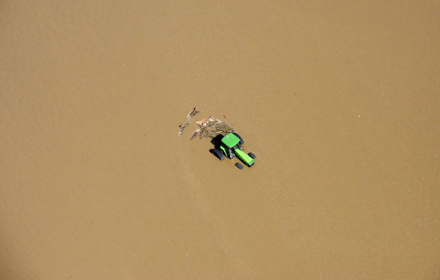 Read moreA tractor sits partially submerged in a field after flooding along the South Platte River in Weld County, Colorado near Greeley, on September 14, 2013. A days-long rush of water from higher ground turned parts of Colorado's expansive eastern plains into muddy swamps. #