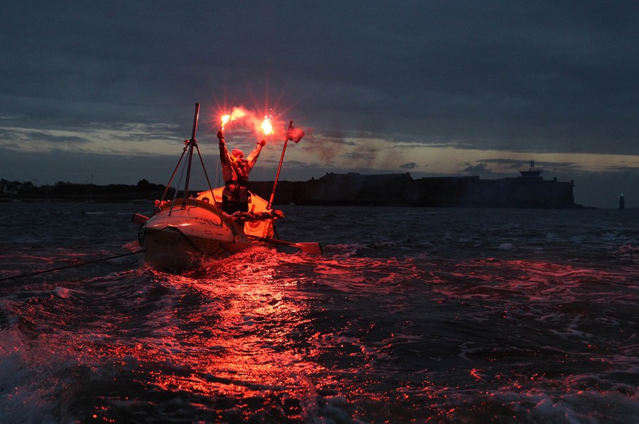 Read moreCanadian rower Mylene Paquette celebrates as she arrives in Lorient, France, on November 12, 2013, after a solo journey across the Atlantic Ocean. Paquette is the first North American woman to row solo across the North Atlantic. She left Halifax just over four months ago in a specially designed 7.3-meter boat propelled only by Paquette and the currents. #