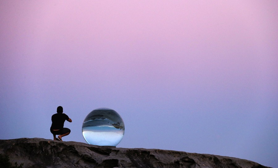Read moreA person takes a photograph of a sculpture by artist Lucy Humphrey titled "horizon" on a rocky cliff which is part of the "Sculpture by the Sea" exhibition at Sydney's Tamarama Beach, on October 24, 2013. The free and temporary outdoor exhibition, now in its 17th year, stretches for two kilometers along the coastline between Bondi and Tamarama beaches. #