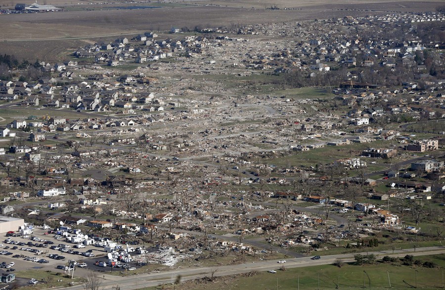 Read moreAn aerial view shows the path of a tornado that hit the western Illinois town of Washington, on November 18, 2013. It was one of the worst-hit areas after intense storms and tornadoes swept through Illinois. The National Weather Service says the tornado that hit Washington had a preliminary rating of EF-4, meaning wind speeds of 170 mph to 190 mph. #