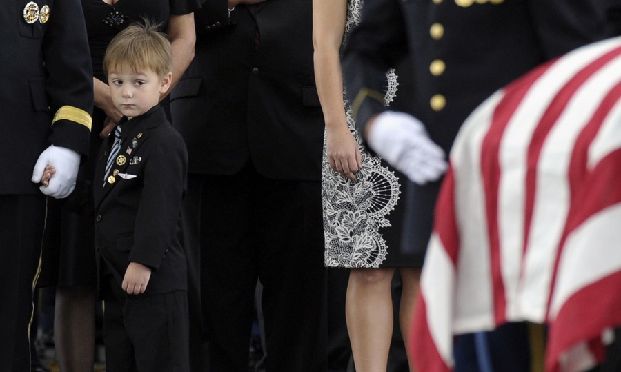 Read moreKaden Bowden, son of U.S. Army Staff Sgt. Joshua J. Bowden, looks at the casket for his father during burial services at Arlington National Cemetery in Arlington, Virginia, on September 27, 2013. Bowden was from Villa Rica, Georgia, and died on August 31, 2013, from injuries sustained while serving in Afghanistan. #
