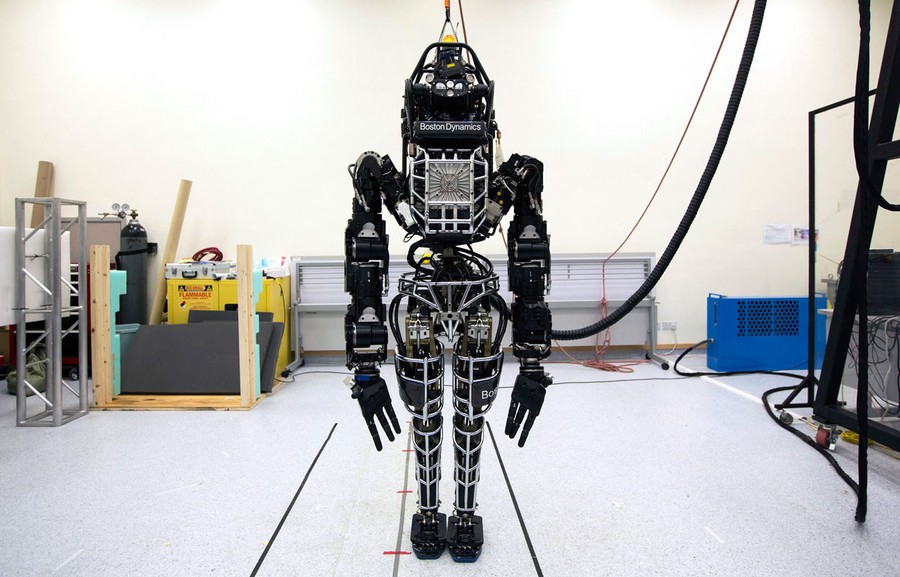 Read moreBipedal humanoid robot "Atlas", primarily developed by the American robotics company Boston Dynamics, is presented to the media during a news conference at the University of Hong Kong, on October 17, 2013. The 6-foot (1.83 m) tall, 330-pound (149.7 kg) robot is made of graded aluminum and titanium and costs HK$ 15 million ($1.93 million). It is capable of a variety of natural movements, including dynamic walking, calisthenics and user programmed behaviors, according to the University of Hong Kong's press release. #
