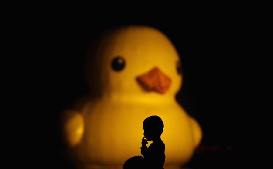 Read moreA Chinese boy sits on his father's shoulders to see an 18 meter high rubber duck at Beijing Garden Expo Park on September 6, 2013 in Beijing, China. After touring 13 cities in 10 countries, the giant rubber duck designed by Dutch artist Florentijn Hofman floated first at Beijing Garden Expo Park and then at the Summer Palace in Beijing. #